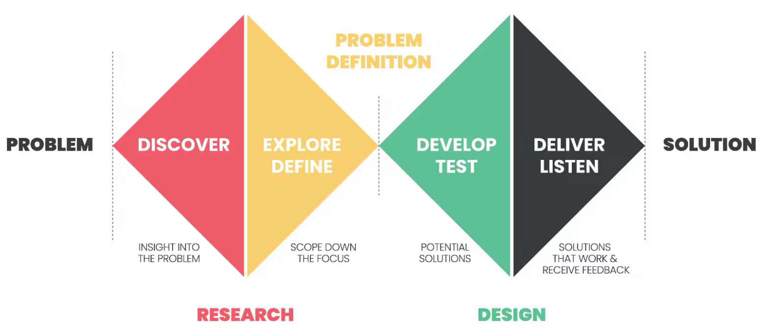 My design process typically follows the double diamond framework, though of course most projects often evolve beyond the straight forward path. I bring a comprehensive skill set spanning the entire product design lifecycle—from discovery and research to final design QA. Below, you’ll find more details about my approach and expertise.